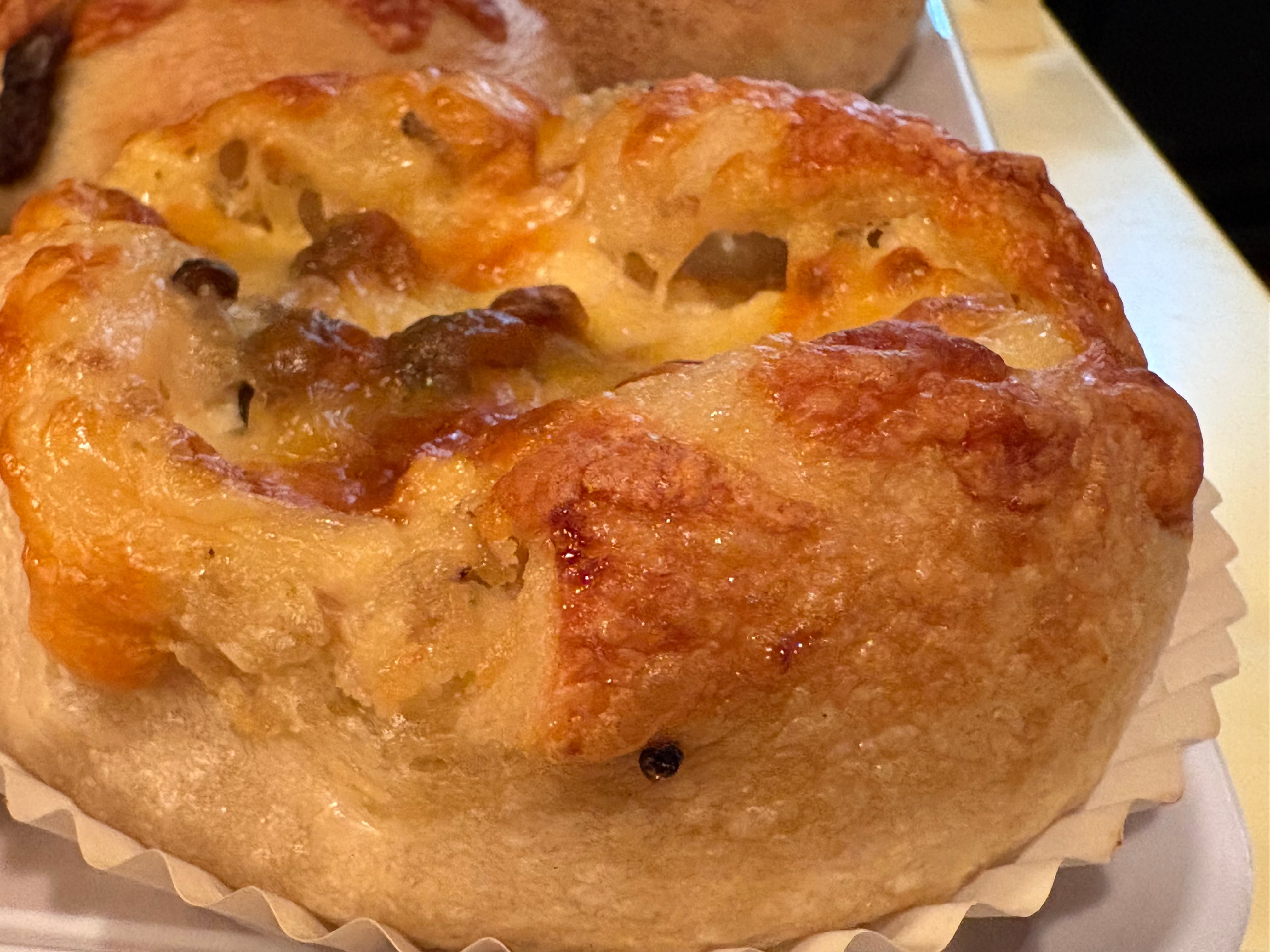 シンプルなプレーン生地にゴルゴンゾーラピカンテと北海道クリームチーズを合わせ胡桃と一緒に包みました。