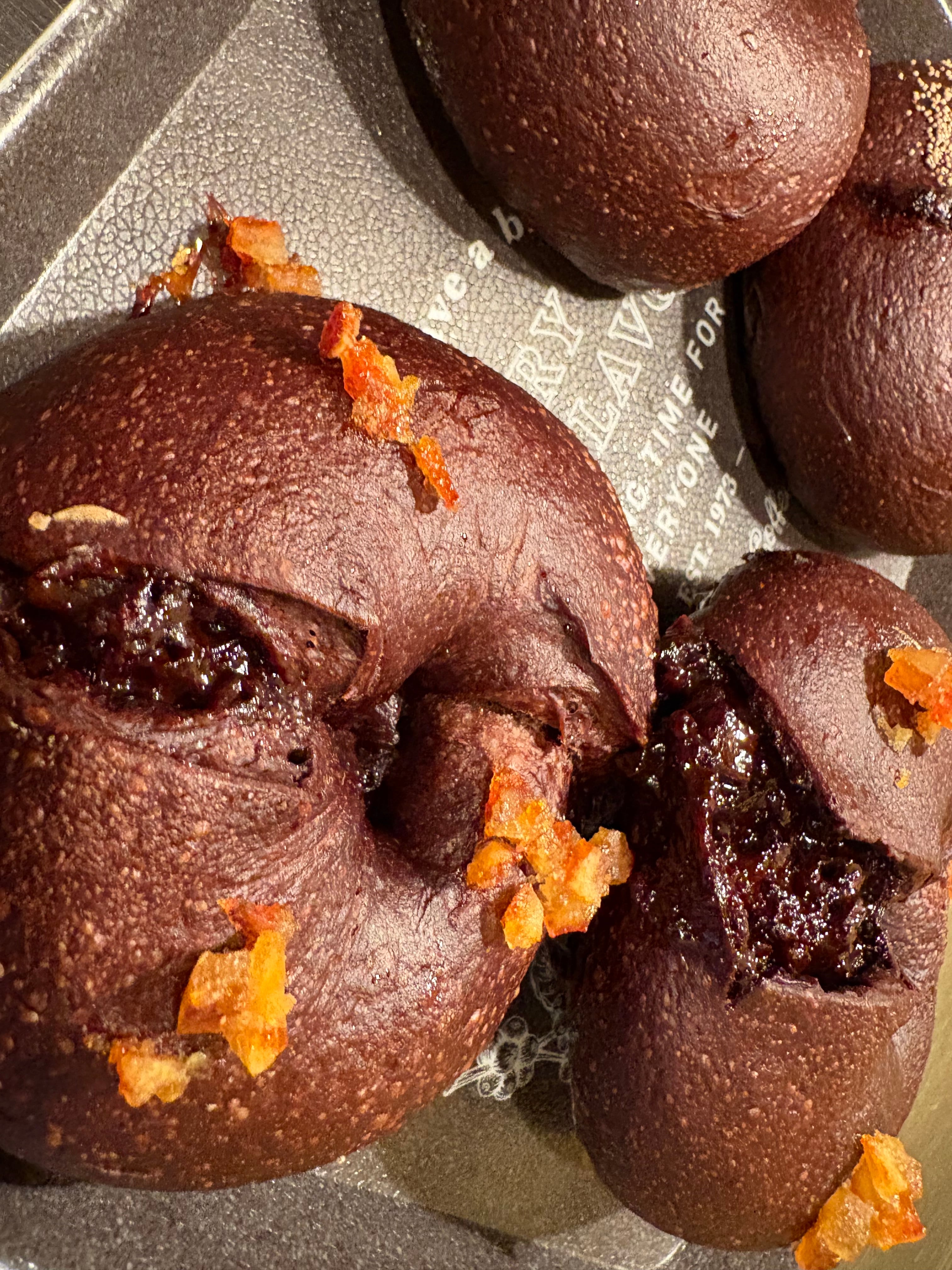 まろやかなチョコレートクリーム、ほろ苦いチョコレートチップ、そして!とろけるスーパーお餅をひとつのベーグルに詰め込みました。