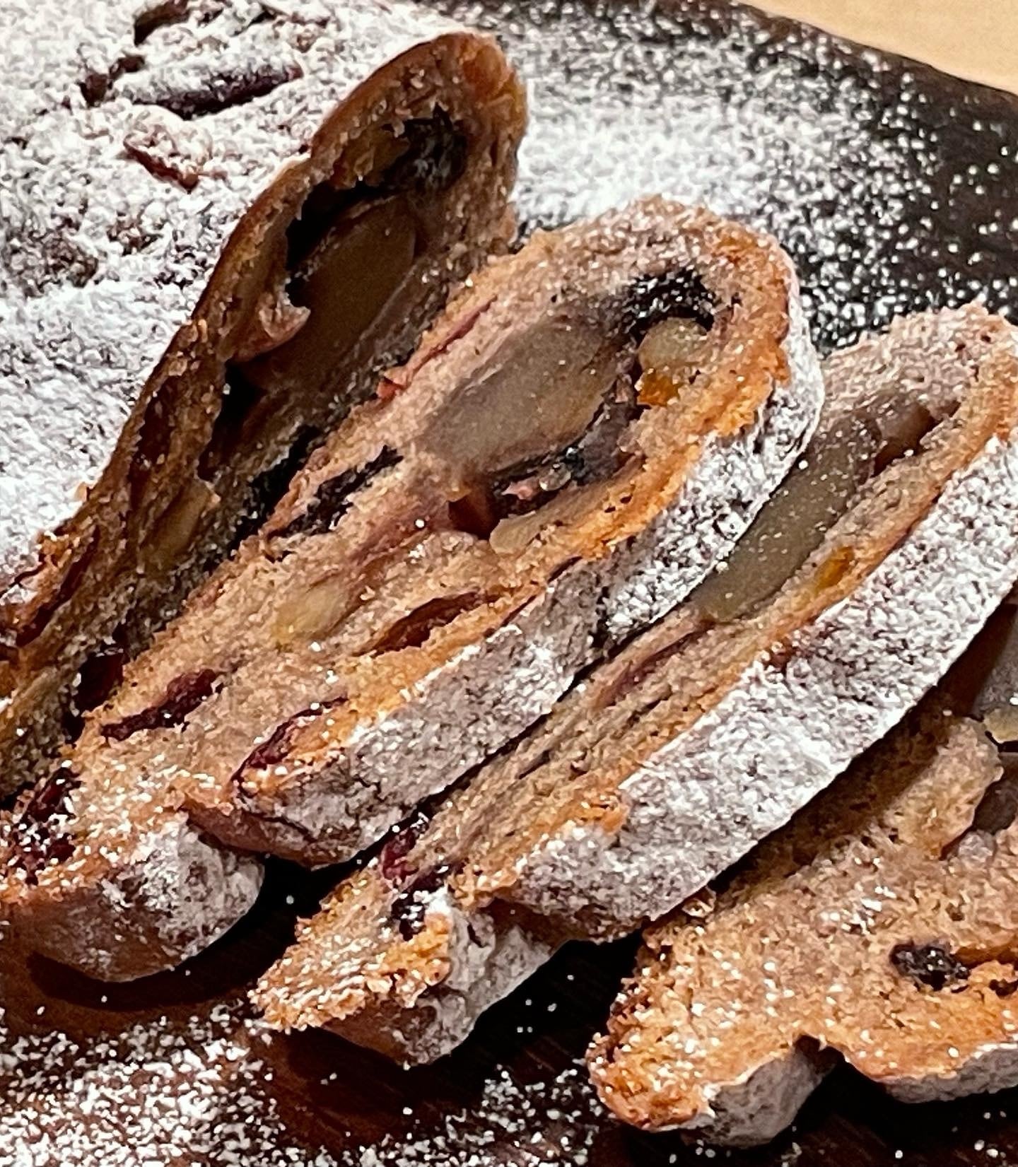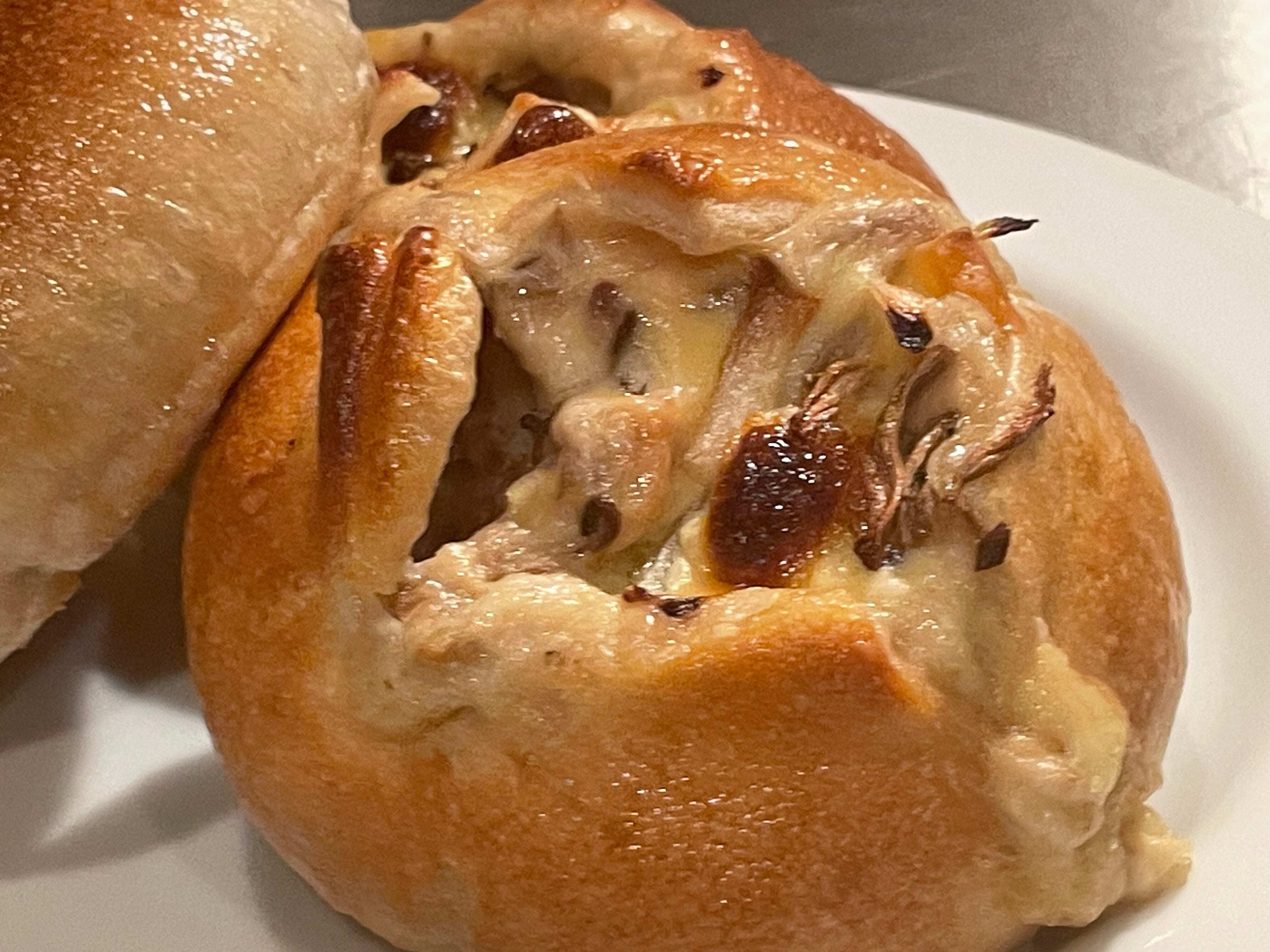 シンプルなプレーン生地にゴルゴンゾーラピカンテと北海道クリームチーズを合わせ胡桃と一緒に包みました。